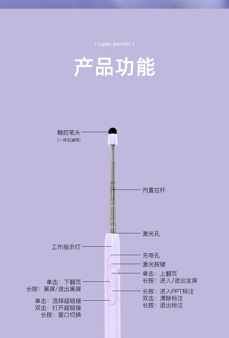 Телескопическая указка, лазерная ручка для переворота страниц для учителей, многофункциональная интеллектуальная ручка с дистанционным управлением PPT, подходящая для электронной доски Seewo, сенсорный экран, написание мультимедийных учебных программ, лазерный универсальный стилус для машины