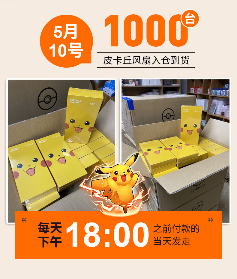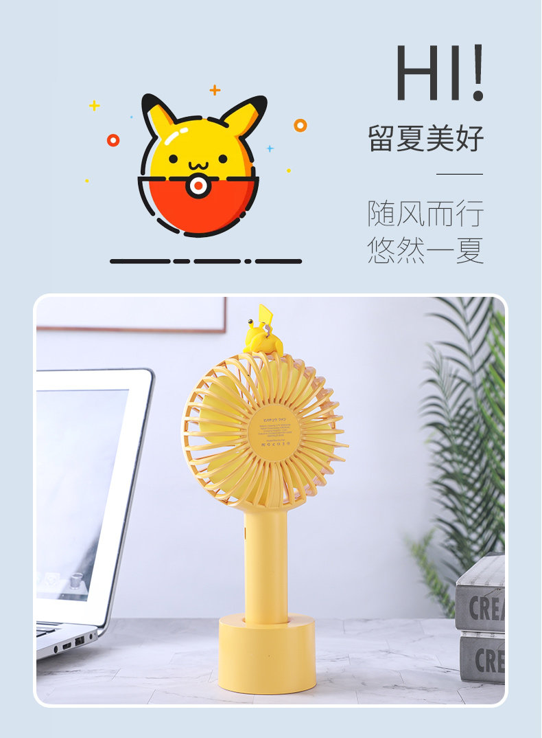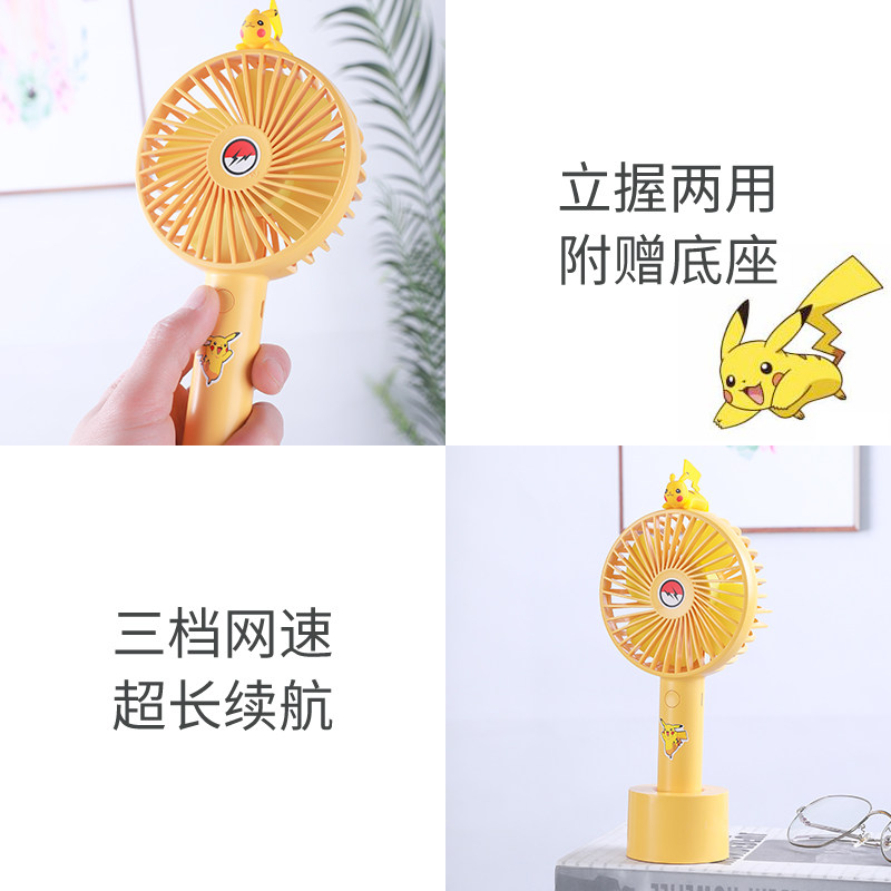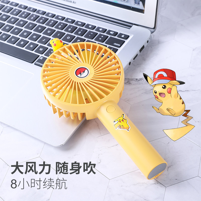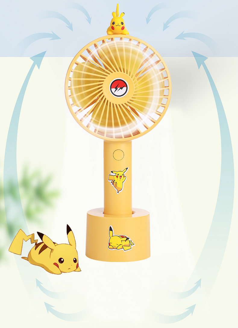 Pikachu маленький фанат держит милые USB -зарядку студентов -мультфильмов бикачу с портативными немальниками детей большим ветром