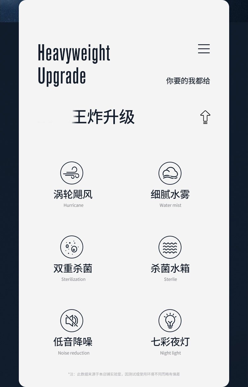 - Сенсорный экран+очистка+Атомизация Увлажнитель+Ночной свет+Пакет льда
