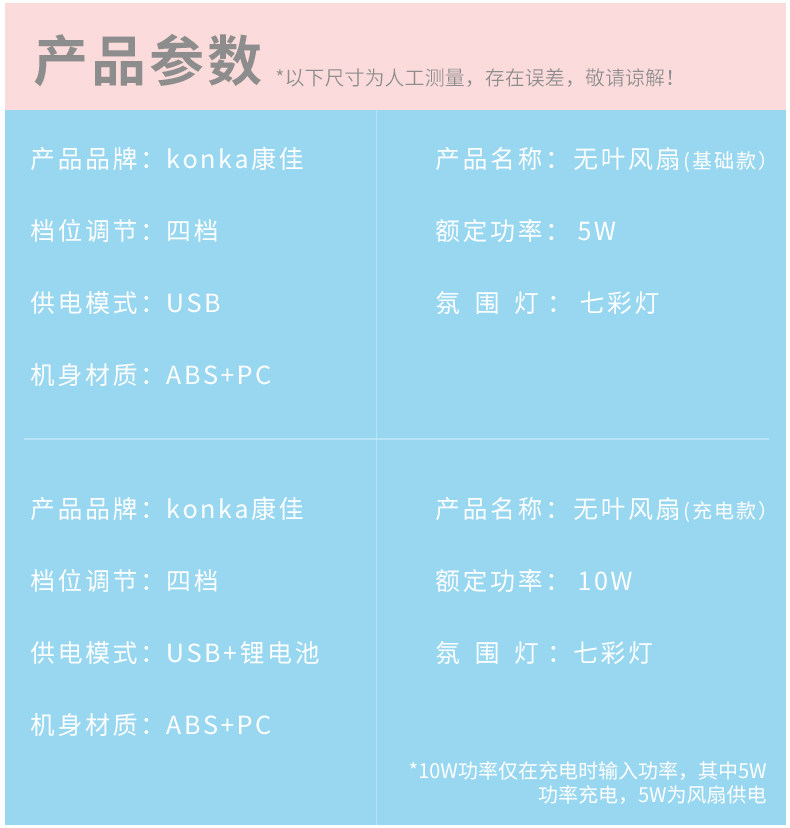 Konka Small Fan Desktop USB Портативный манера -мовер -без электрического вентилятора, большой ветер, студент -общежитие, мини -мини -тихий офисный стол на летнем настольном настольном кровати беспроводной электрический вентилятор.