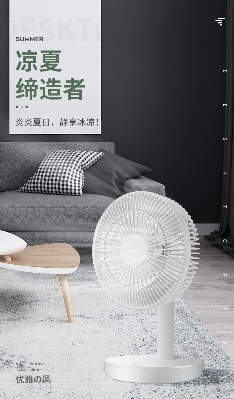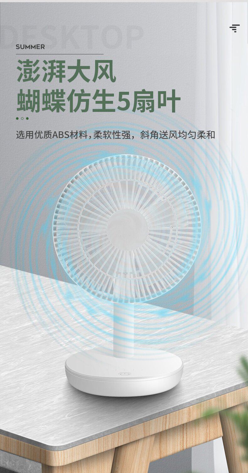 Новый электрический вентилятор дом тихий маленький вентилятор k маленький беспроводной рабочие столы для переднего стола в стиле стола в стиле USB зарядка мини -электрический вентилятор