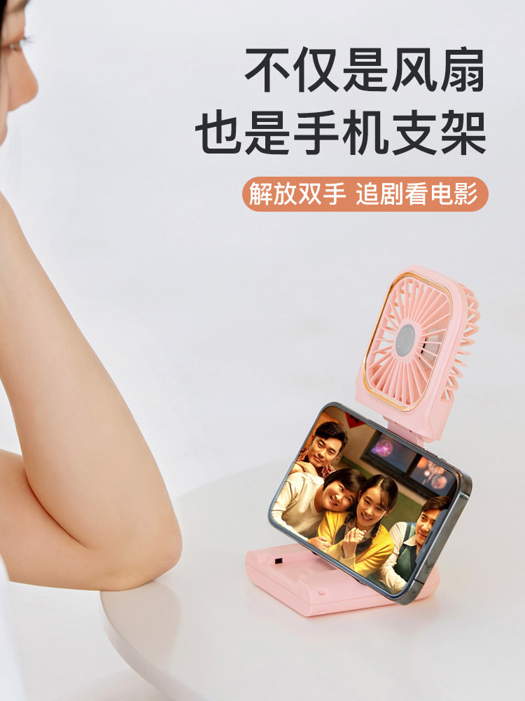 Маленький портативный вентилятор с зарядкой для школьников, настольный милый складной беззвучный держатель для телефона