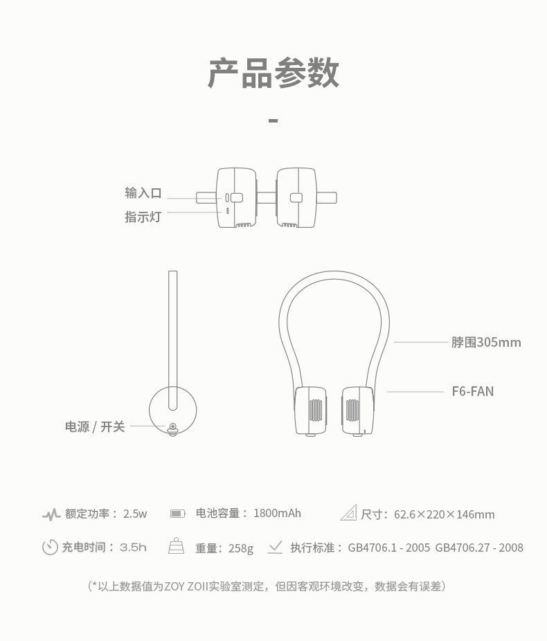 Zoyzoii подвесная шея детская USB зарядка ленивый портативный портативный безлистный ультра-тихий подвесной маленький вентилятор на шею