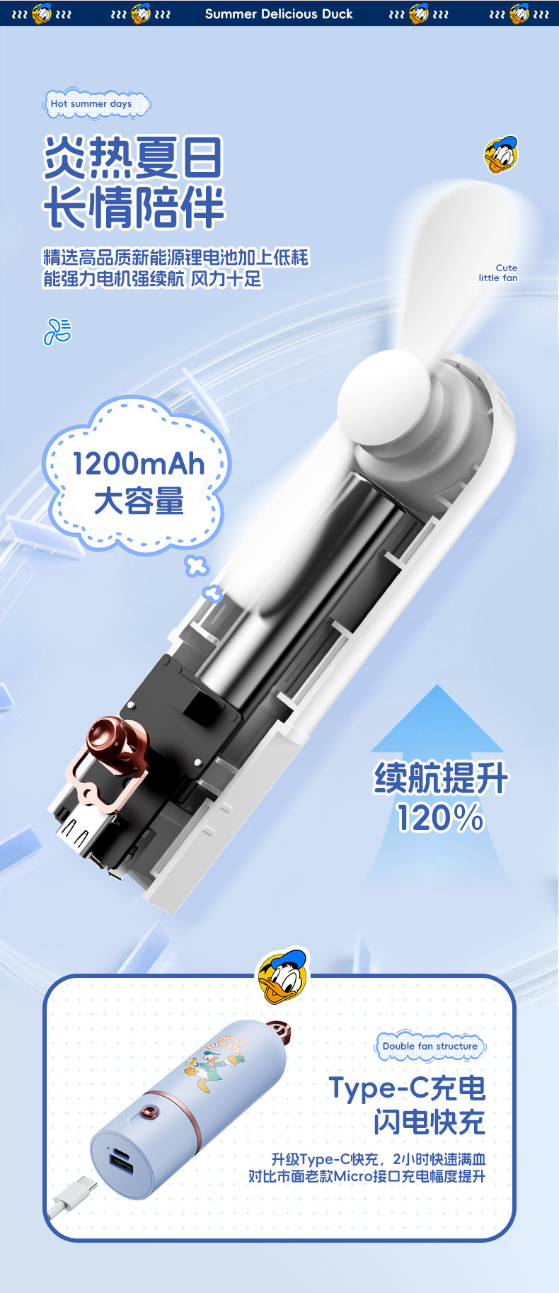 Дисней, портативный летний охлаждающий дорожный вентилятор для зарядного устройства для школьников
