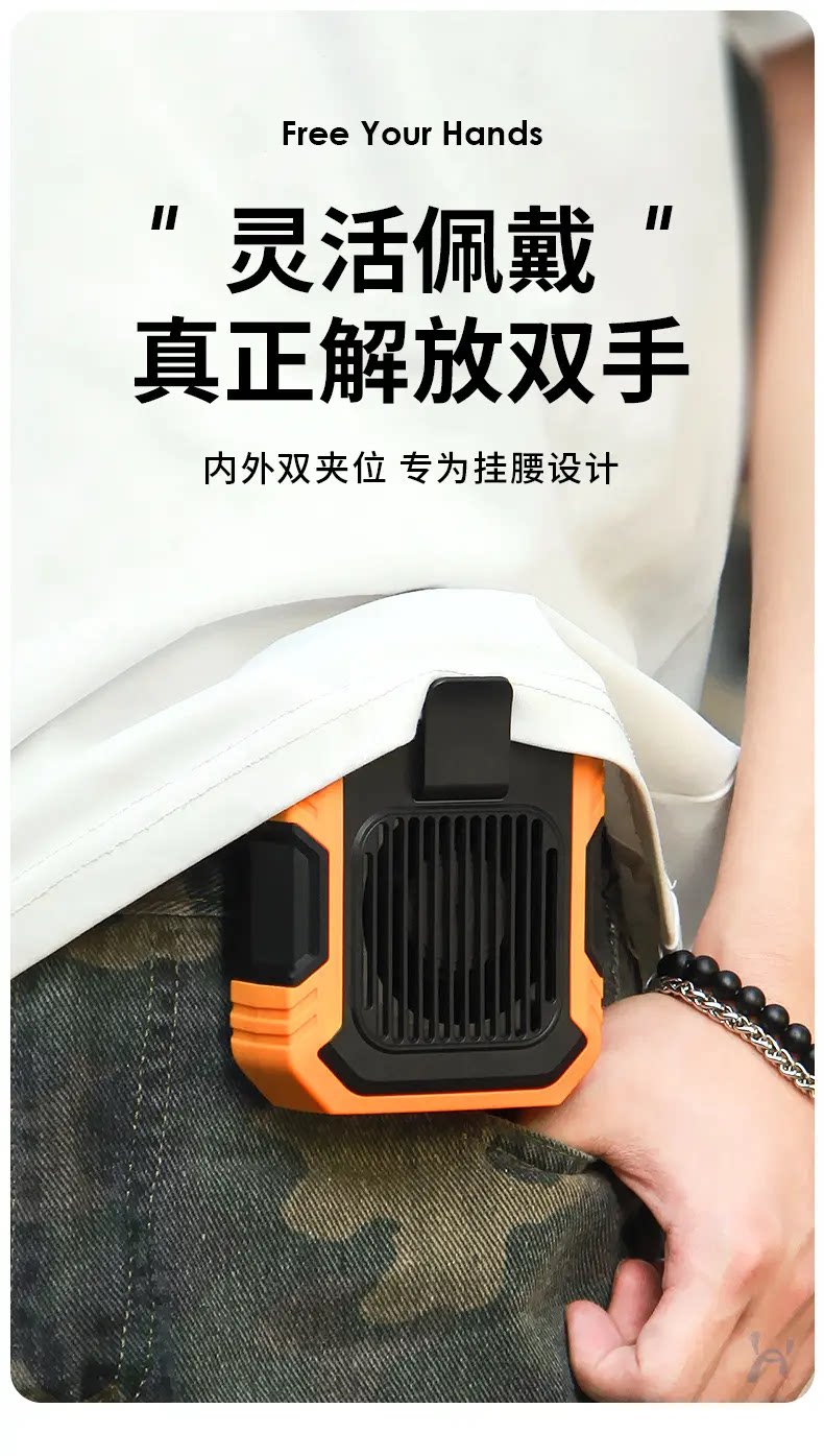 Новый тип поясного вентилятора для охлаждения на открытом воздухе при высоких температурах и сильном ветре, портативный и поясной для охлаждения на строительной площадке летом.