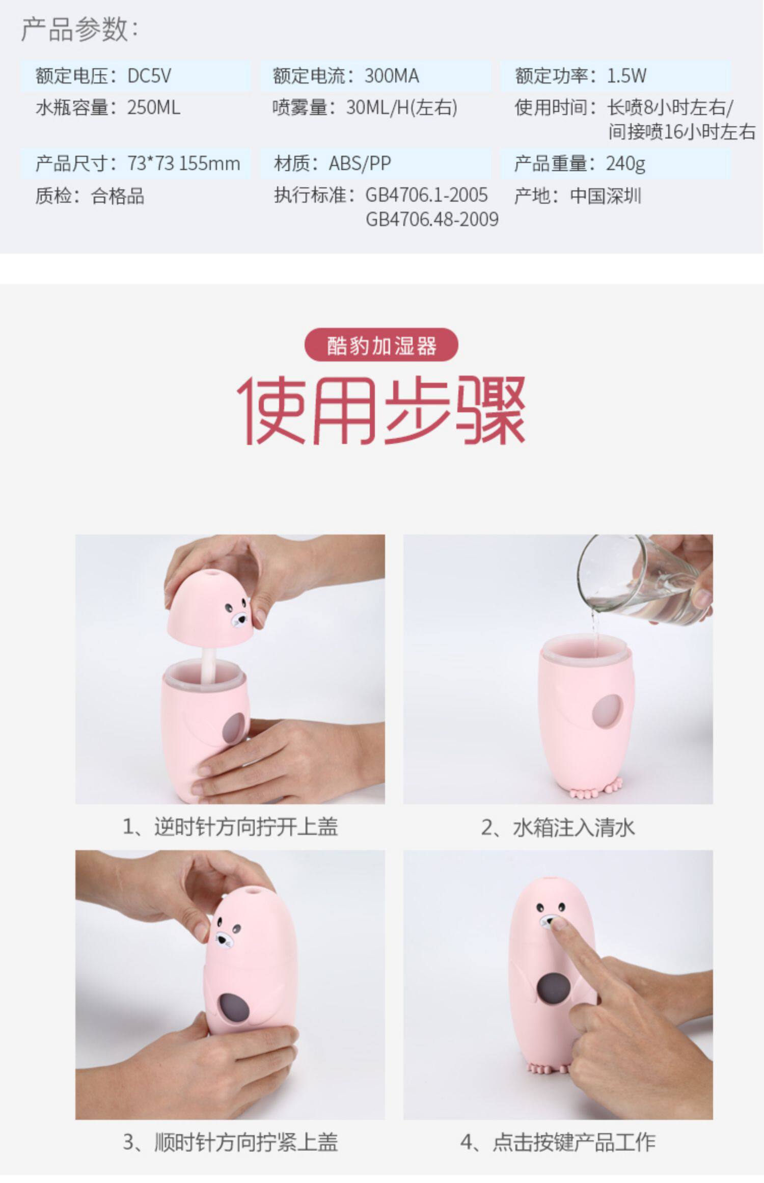 Настольный увлажнитель воздуха, маленький милый беззвучный спрей
