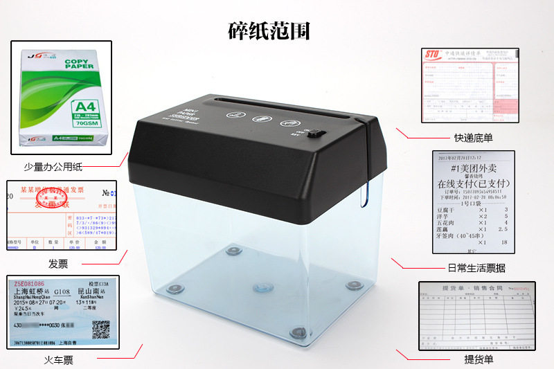 Mini USB -дробилка может использовать USB Power или 4 батареи для питания.Он очень подходит для сокрушительных и конфиденциальных счетов за счет финансовых и системных мест в области ценных бумаг. Настольный стол маленький, с небольшим размером и прекрасным внешним видом.Сокрушительные объекты имеют полоску шириной 2-3 мм, а сломанная нота может использоваться в качестве упаковки и начинки