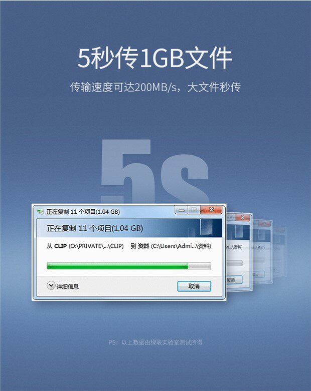 - USB3.0 высокоскоростной трансмиссии-1GB Файл 5 секунд.