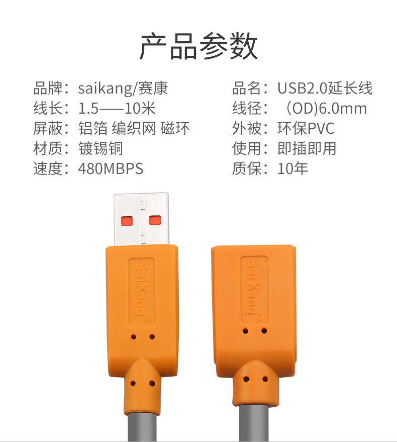 Новая линия расширения USB Saikang USB 2,0 Линия данных 1,5 метра, 3 метра 5 метров 10 метров чистый медный щит