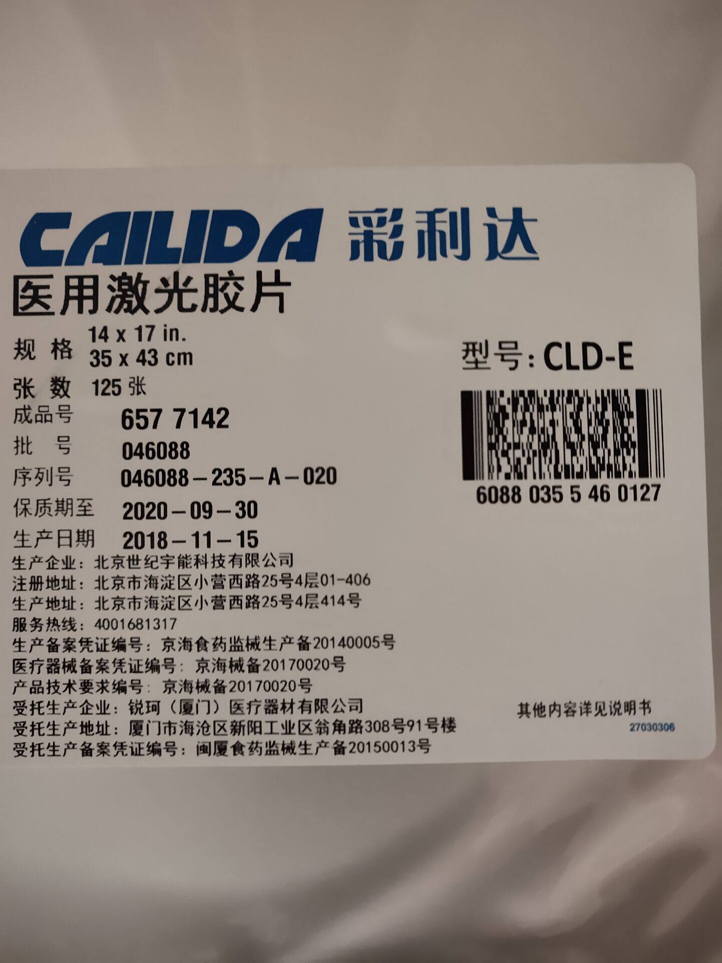 Подлинная медицинская лазерная пленка Caolida 8*10/11*14/14*17cld-e Kodak Medical Laser Film