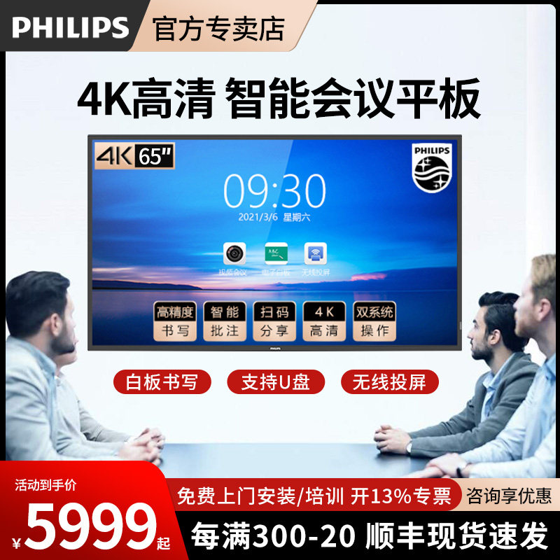 Philips/Philips 55/65 -INCH Conference Tablet All -In -One Machine 4k Smart Touch Electronic Whiteboard Tearning Tepen TV Экран рукописного экрана Интерактивный конференция Большой экран 65BDL2051T