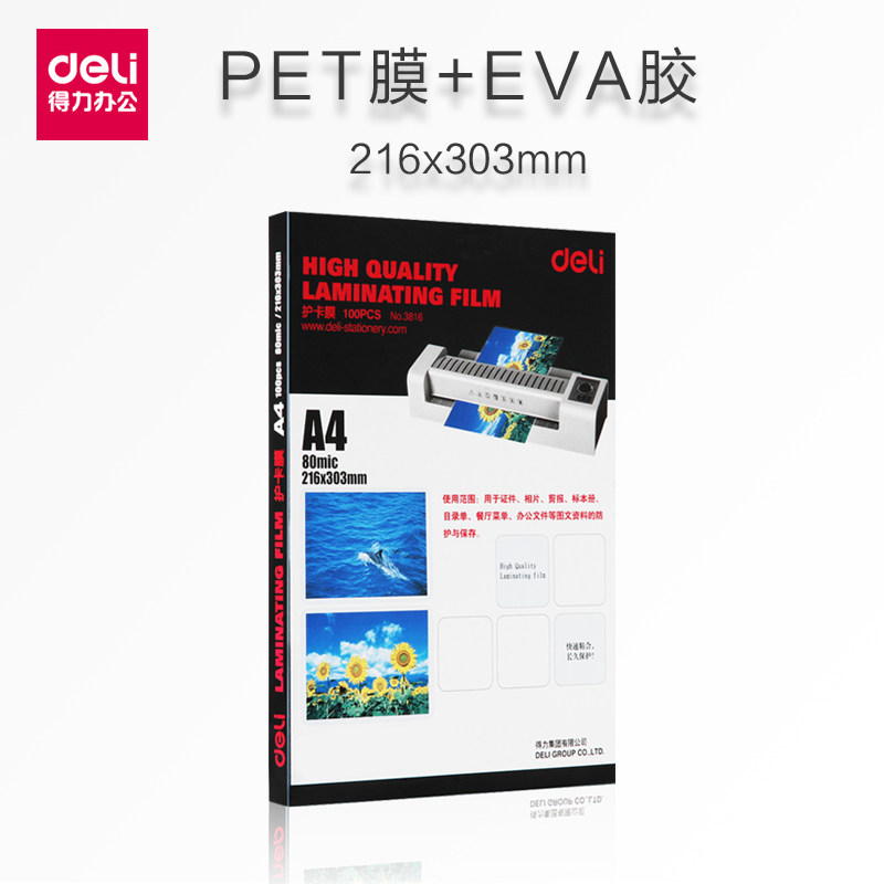 Deli 3819 Высоко -качественная специальная карта пленка/пластиковая пленка уплотнения 220*305 мм 100 листов/упаковки