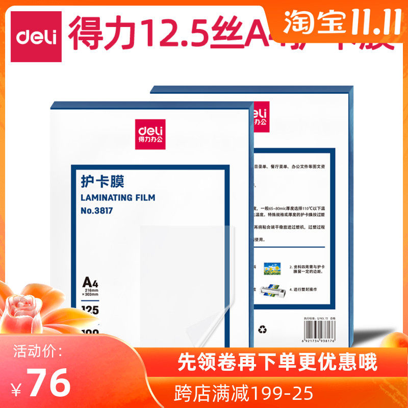 Deli Пластическая пленка 3817 Прозрачная фотокартальная крышка A4 Толщина карты 125 -метровой карты обломки