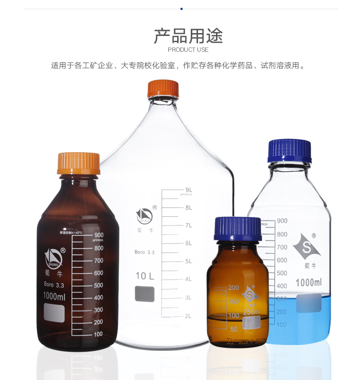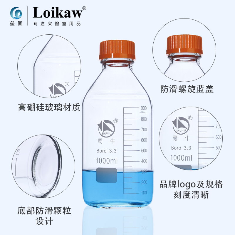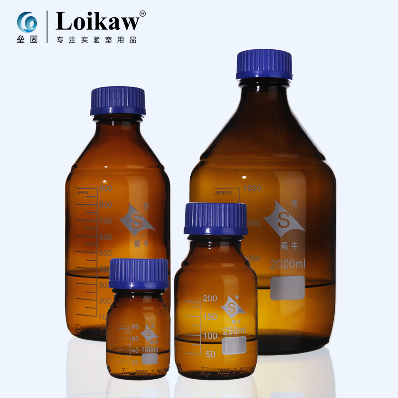 Shu niu Brown Transparent Glass Blue Cover Bottle Bottle High BoroSilized Silk, Blue Cover Bottle 100/250/500/1000 мл