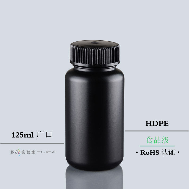 Черная пластиковая бутылка 125 мл грубая -в укрытие для укрытия бутылка бутылка бутылка бутылка HDPE Образец хранения бутылки SGS аутентификация