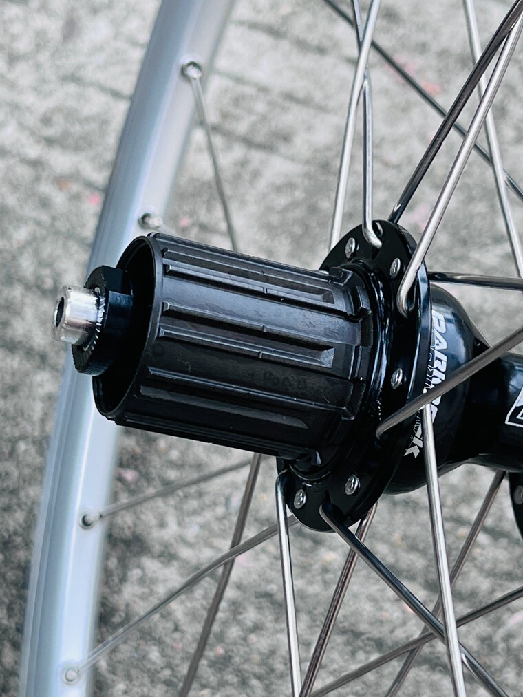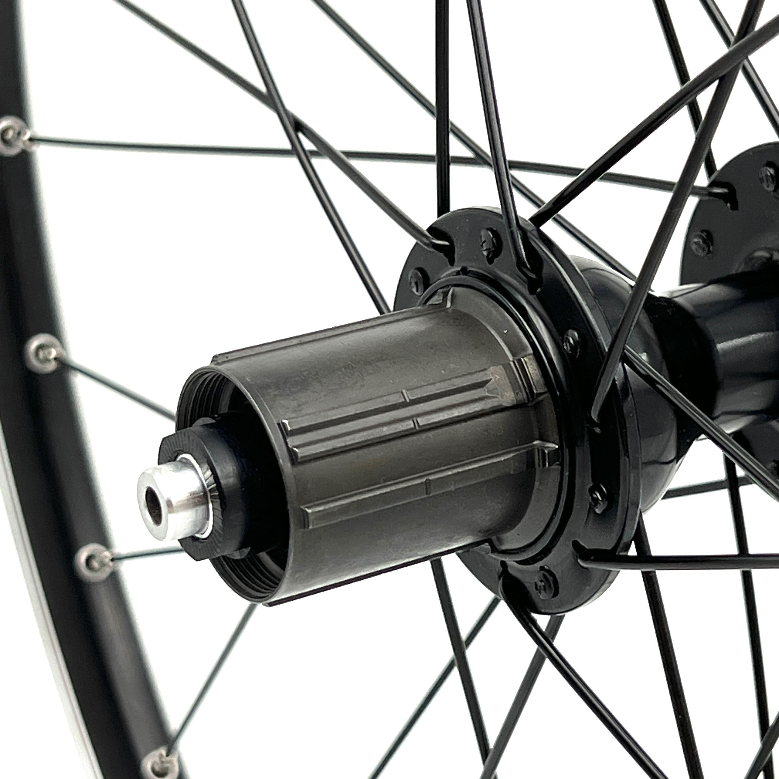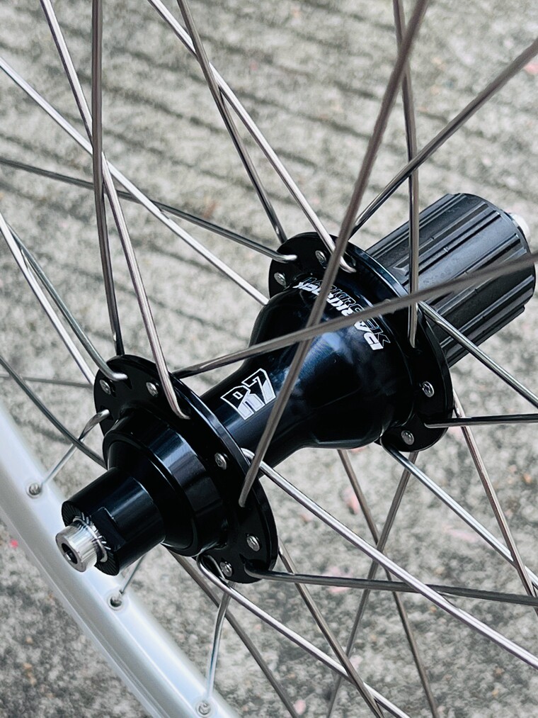 - Черное колесо, серебряная велосипедная втулка, черные велосипедные спицы