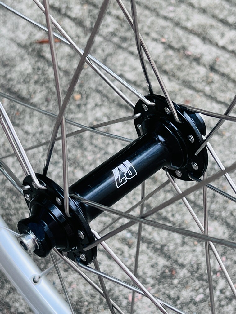 - Серебряное колесо, черная велосипедная втулка, серебряные велосипедные спицы