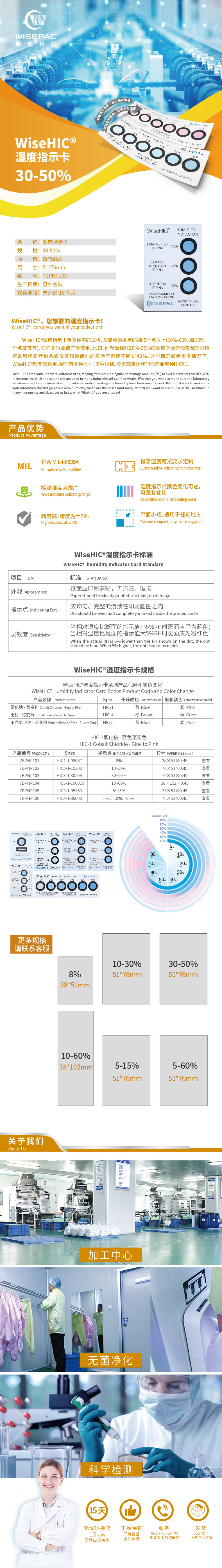 Wisehic-1 Series 3: 30%-40%-50%синий преобразование индикатор влажности розовая влажность 100 таблетки