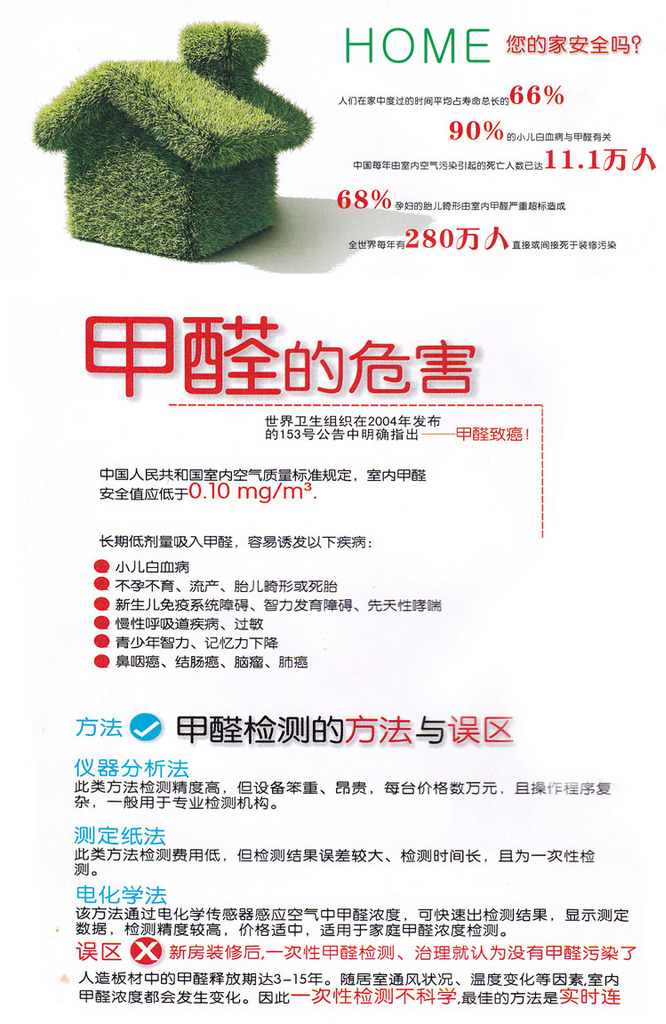 Предполагается обнаружение времени закрытия передних дверей и окон12 часов, Обнаружить максимально допустимую концентрацию0.1mg/m3(Концентрация формальдегида на кубический метр воздуха составляет 0,1 мг)