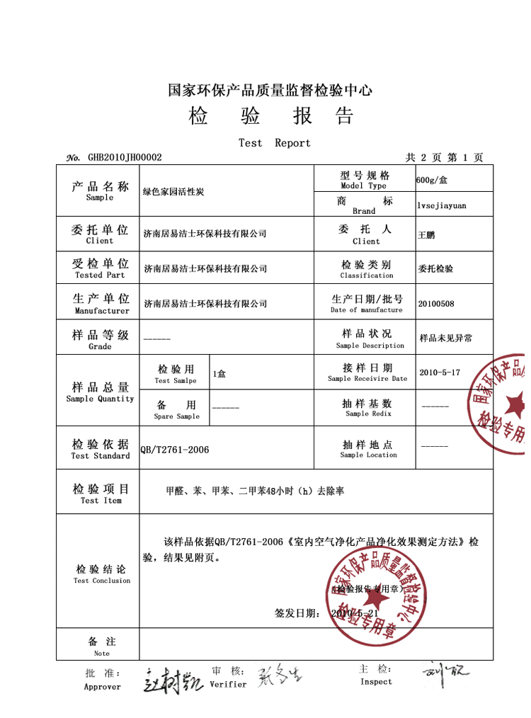 Зеленый дом активированное украшение углерода ссылается на декорирование кокосового кокоса формальдегида активированного кокосового кокоса, активированного углерода 600 г.