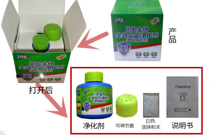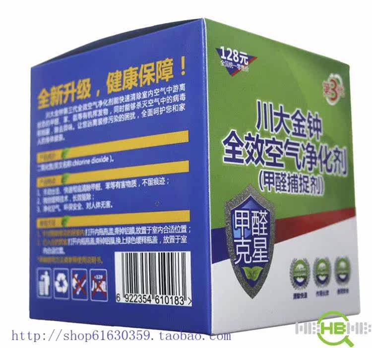 Sichuan Golden Bell"Воздухоочиститель"Он имеет двойные технологии США и Китая. Газы, такие как формальдегид, бензол и аммиак.И после окисления формальдегидом генерируются стабильные вещества, а вредные газы больше не высвобождаются.Следовательно, этот продукт может принципиально удалить формальдегид, который является действительно эффективным удалением формальдегида.Основным компонентом ингредиентов с чистым воздухом является широкий дезинфекционный агент с широким спектром, включая дезинфекцию водопроводной воды, что очень безопасно.