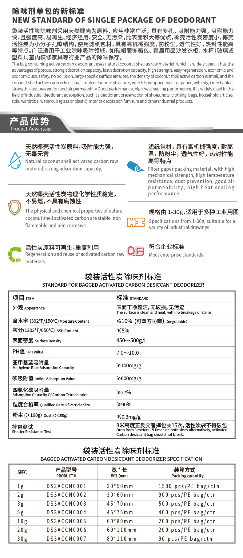Weisheng 1G Gram 1500 Маленькая упаковка активированная карбоновая чашка для чая и шляпа Использование для запаха для удаления формальдегида для удаления формальдегида углеродных мешков