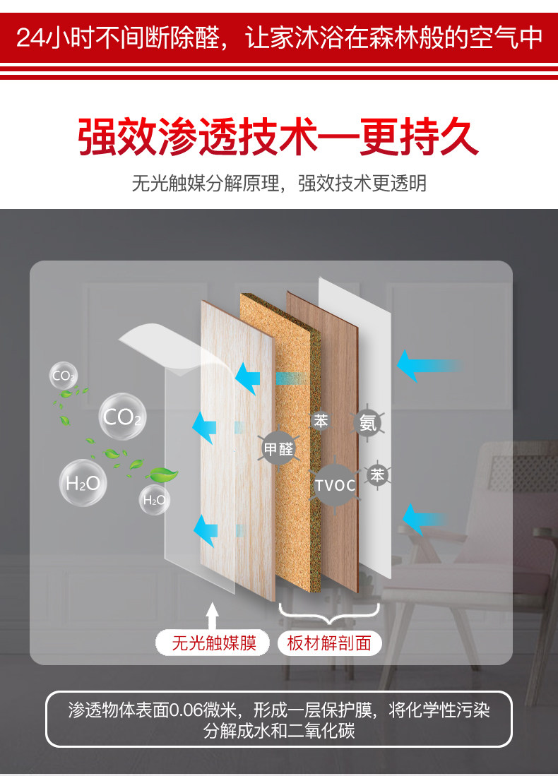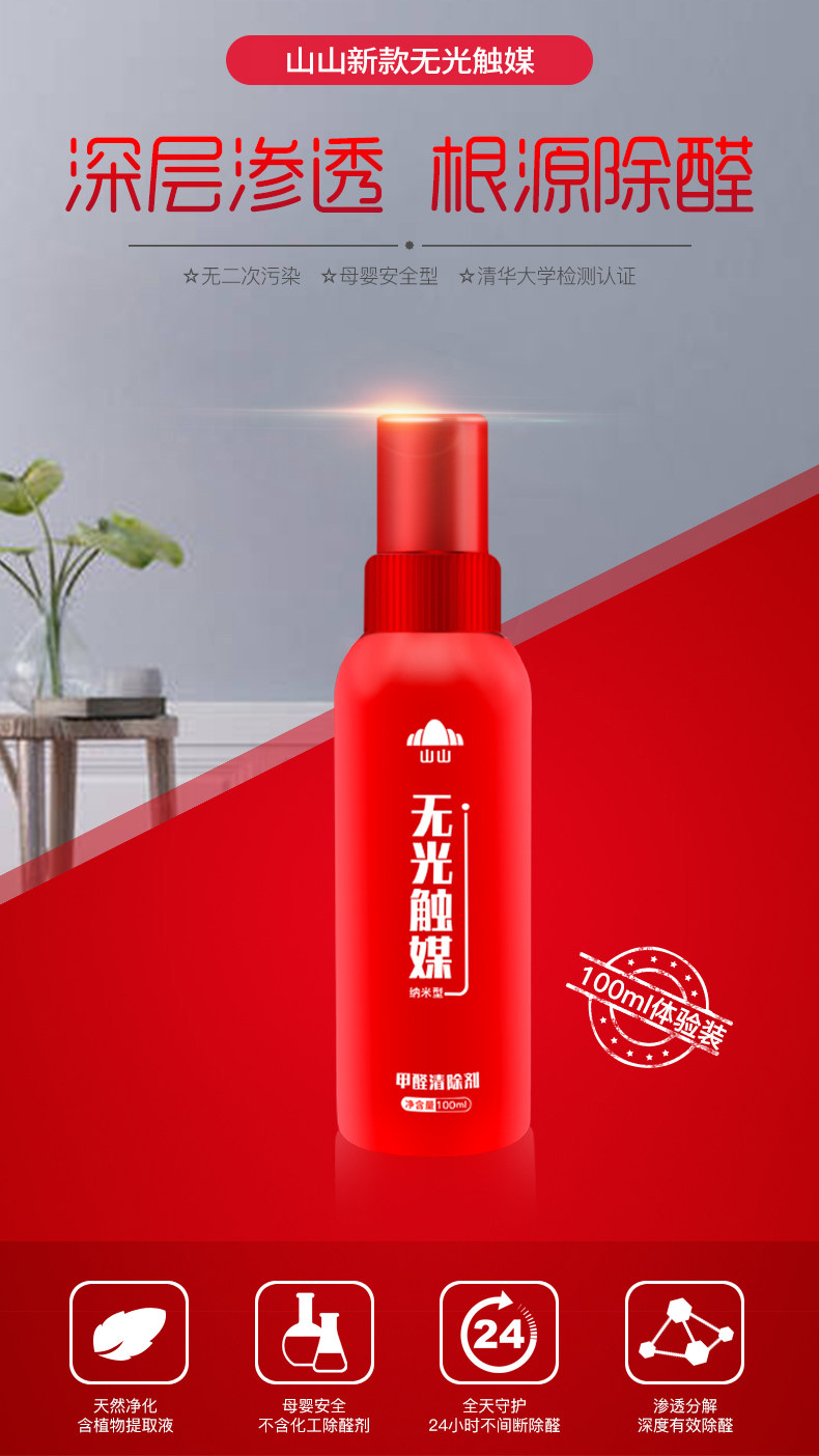 山山 Формальдегид поляны агент Свет Катализатор Дом Удаление формальдегида Новая домашняя мебель дезодорирование мощного спрея артефакт