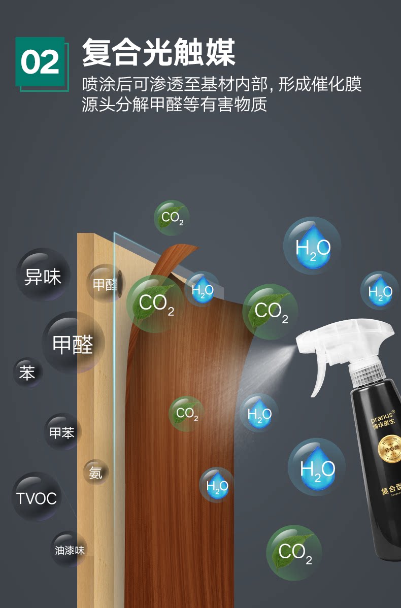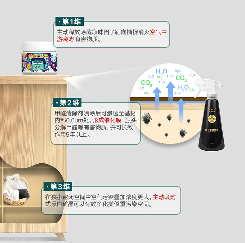 Двухметровые комнаты, одноразовое световое катализатор Удаление формальдегида спрей Новый домашний формальдегид Удаление Удаление Удаление Удаление