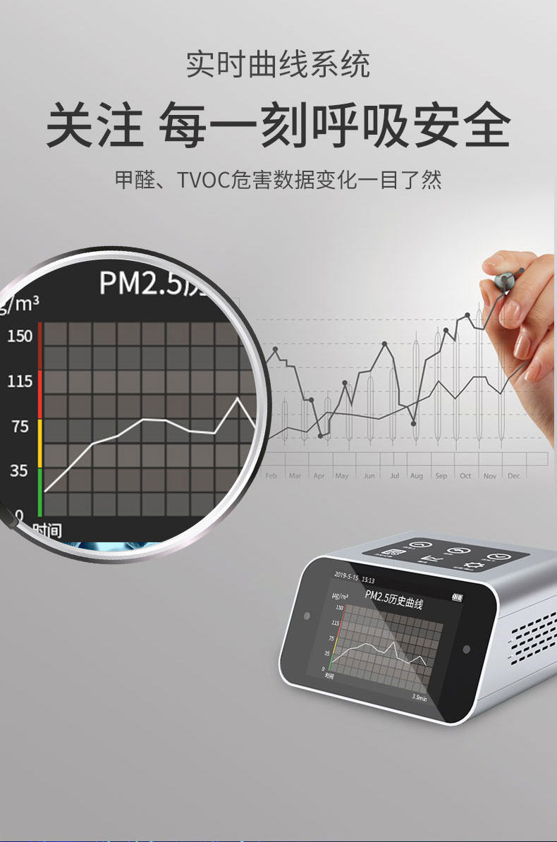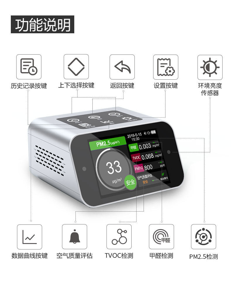 铂锐朗 Новая комната Формальдегид Обнаружение Инструмент Домохозяйство Профессиональный тест качества воздуха в помещении PM2.5 Инструмент измерения