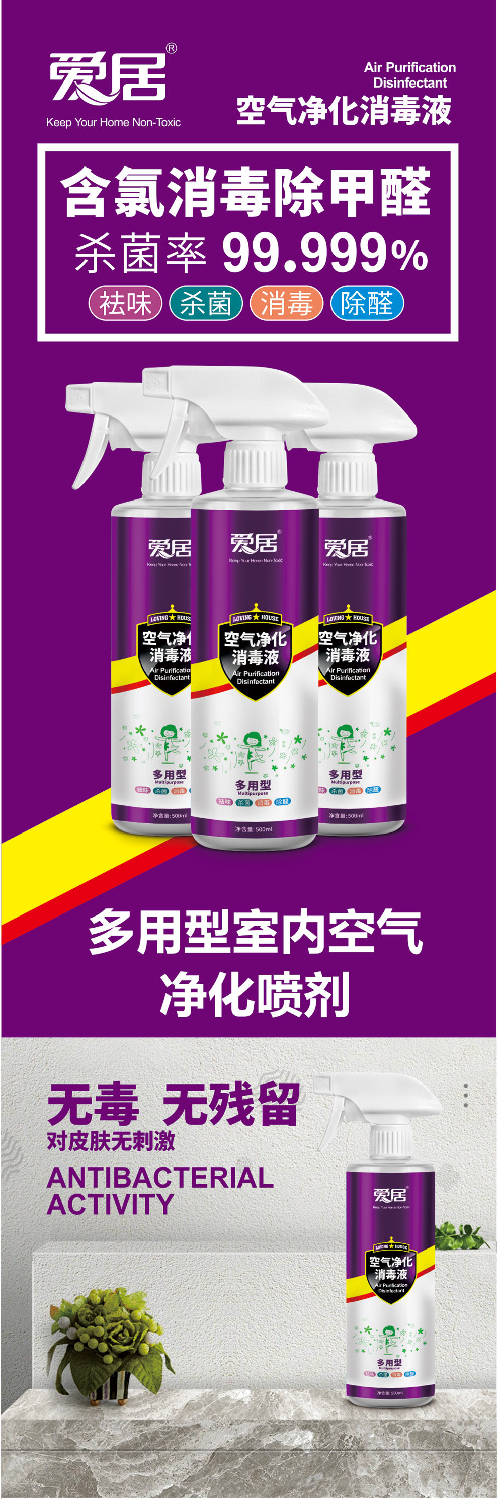 Дезинфицирующее средство, спрей, антибактериальный аэрозоль для домашнего использования, (в наличии на складе)
