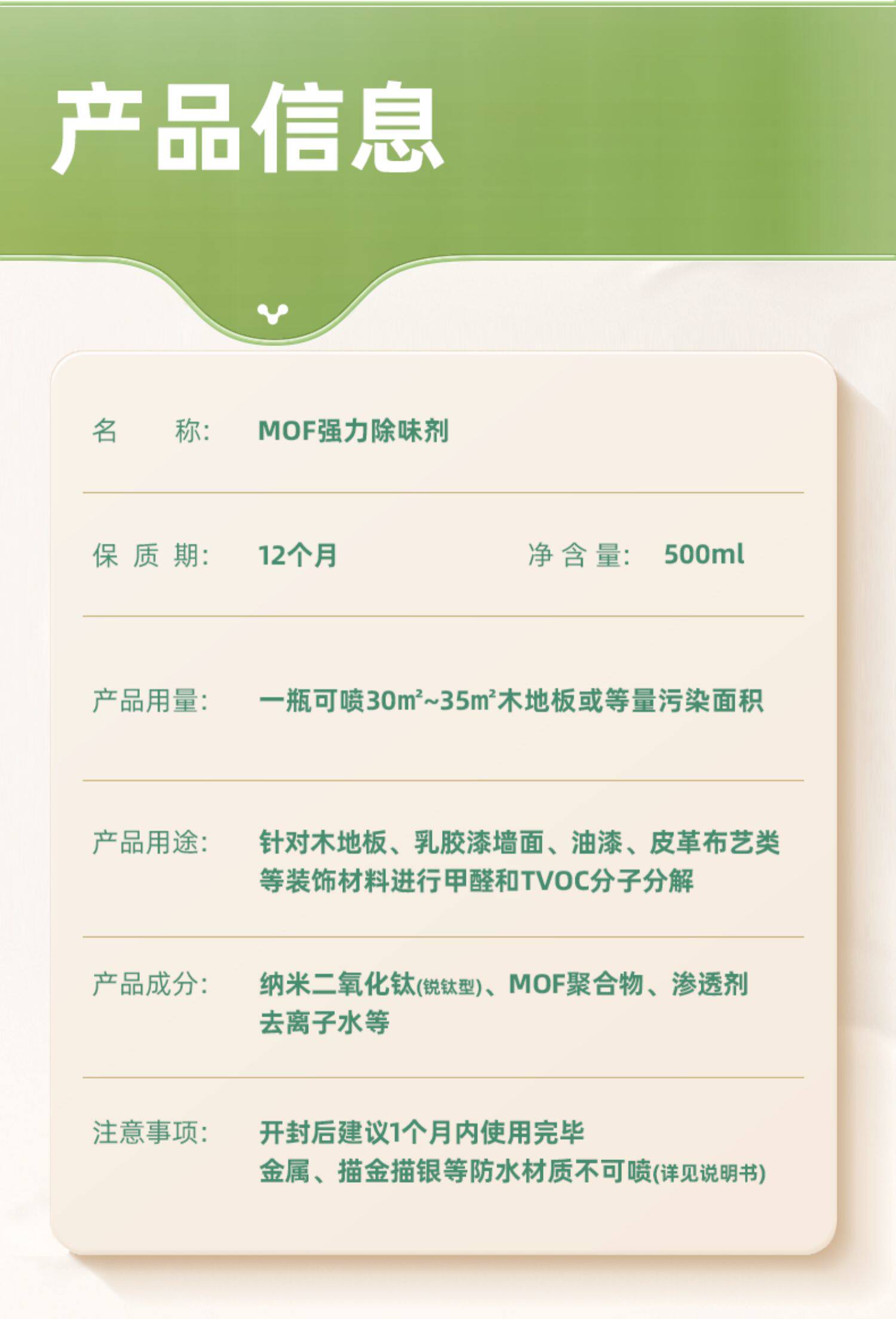沐森 Формальдегидский клирент -агент MOF Фотокатализатор в дополнение к формальдегидам в новых домах в домашнем автомобиле TVOC Очистка брызги запаха