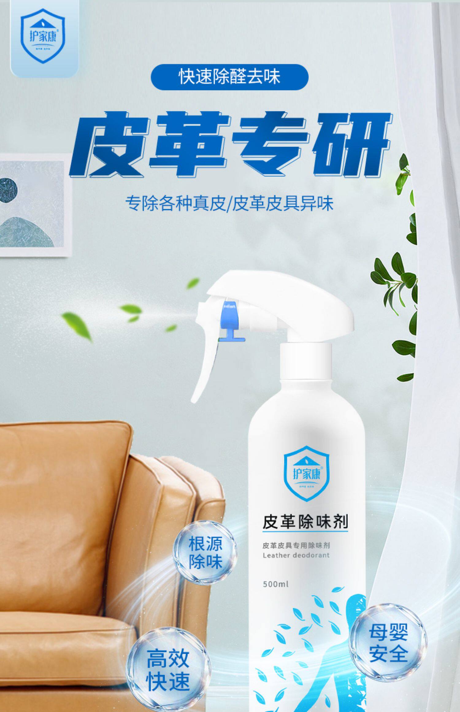 护家康 Кожаный дезоксси кожаный диван -диван дезодорантный спрей кожаный кожаный кожаный кровать новый автомобиль кожа
