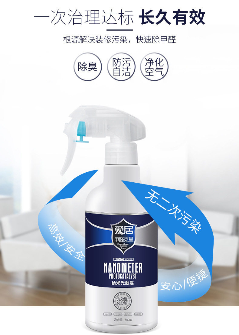 爱居 Видимый нанофотокатализатор формальдегид -агент агент сырой жидкий спрей мощно удаляет артефакт запаха украшения