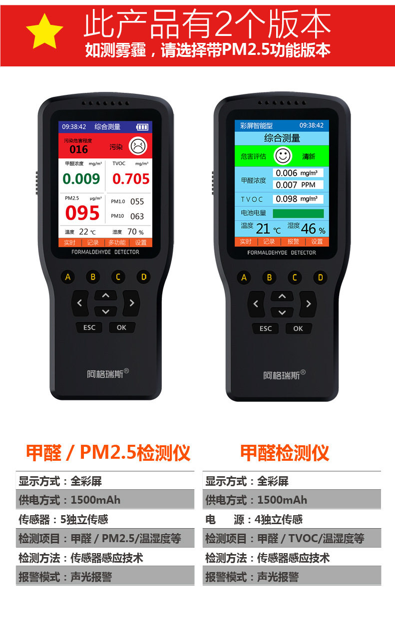 阿格瑞斯 Новый продукт формальдегид детектор домашний комната Профессиональный мониторинг качества воздуха Формальдегидный счетчик