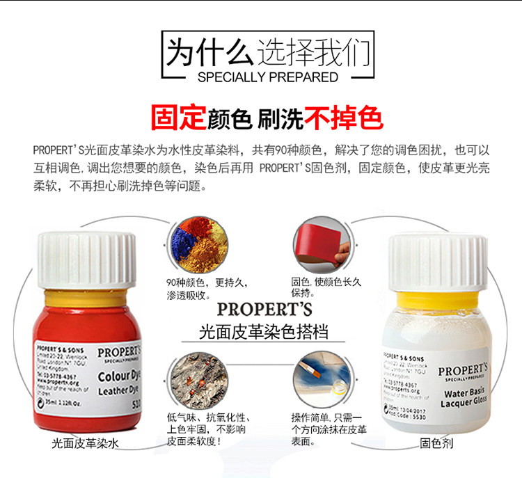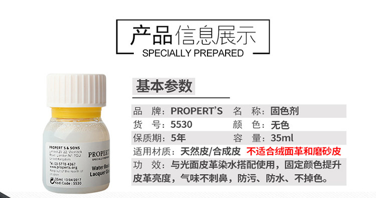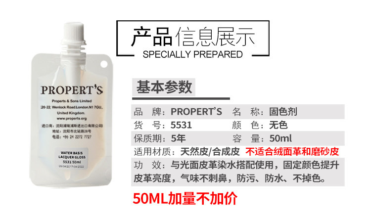 PROPERT’S 5530 Средство для фиксации крашения кожи Осветлитель кожи Кожаная одежда Кожаные сумки Кожаная обувь Обновление цвета