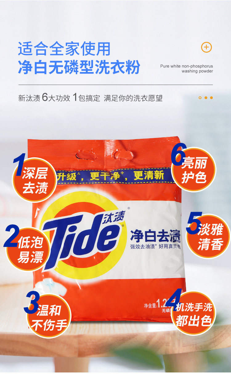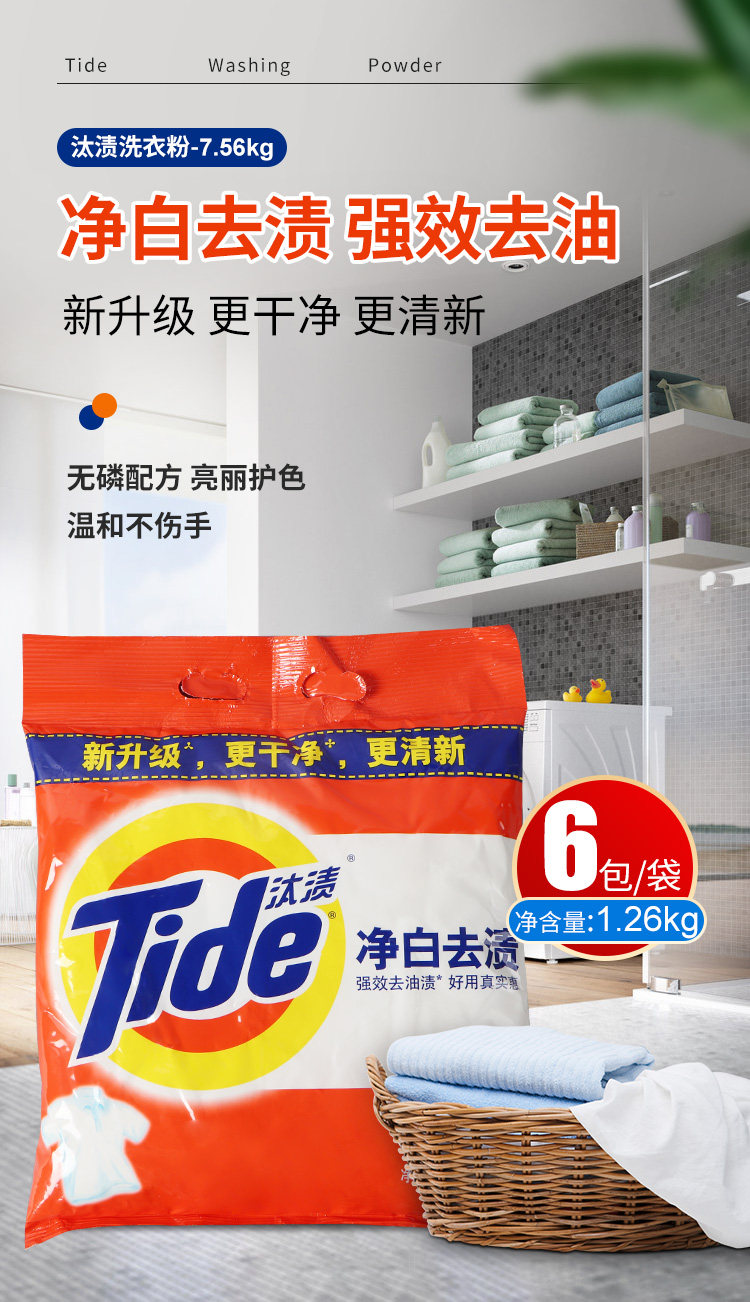 汰渍 Стиральный порошок 1,15 кг*6 мешков с белым окрашиванием, чистка масла, очистка, домашняя стиральная машина, порошок для белья