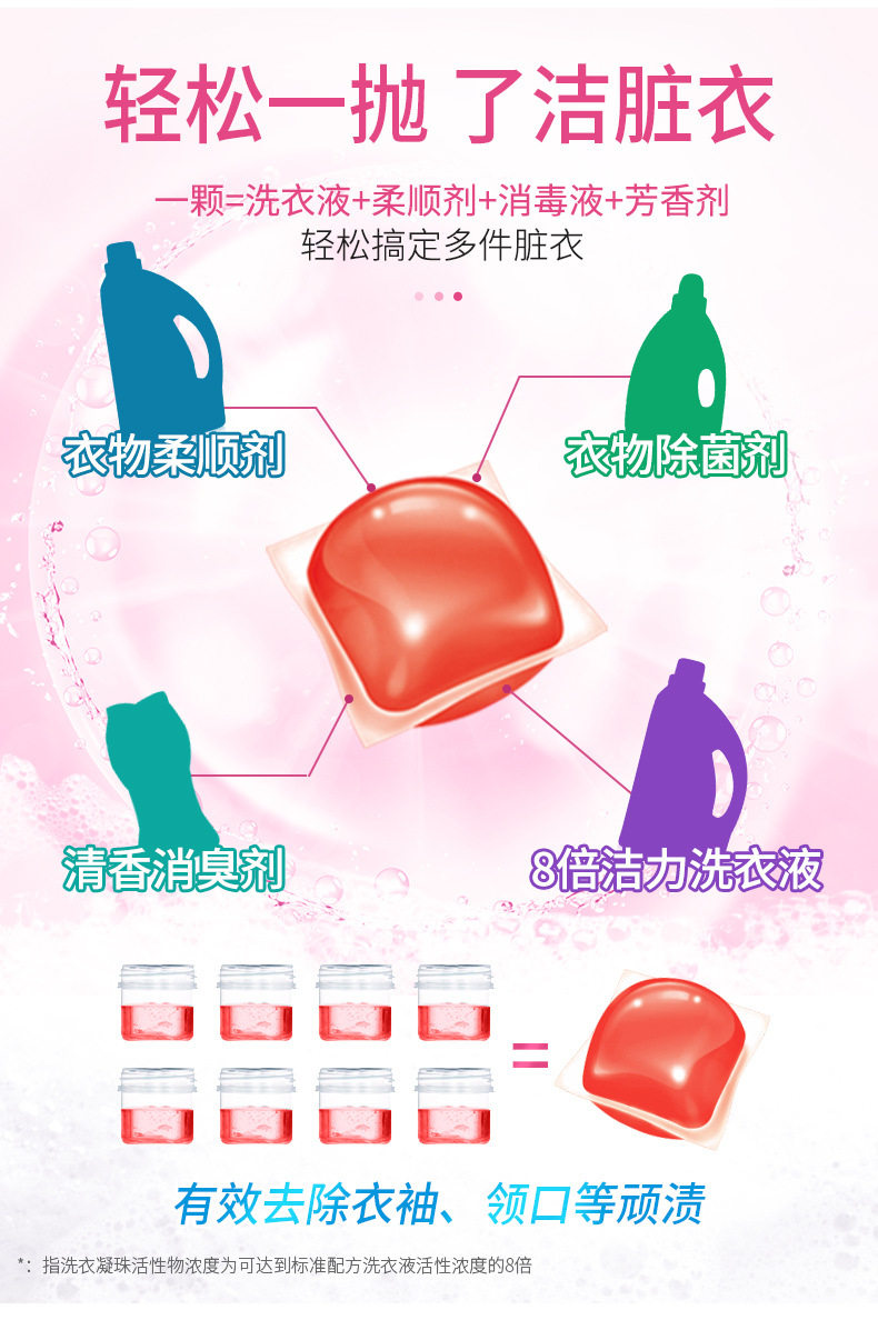 Цветочные капсулы для стирки, концентрированный стиральный порошок со стойким ароматом, 8G, 30 шт