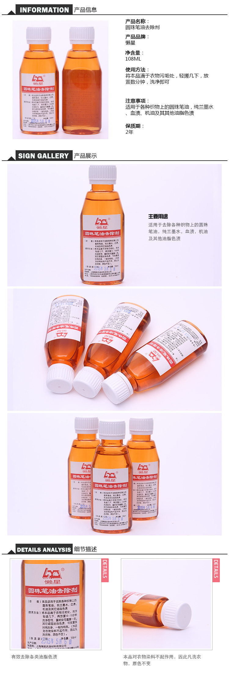 Этот продукт подходит для удаления шарикового масла, чистых чернил орхидей, пятен крови, масла и других жировых пятен на различных тканях.