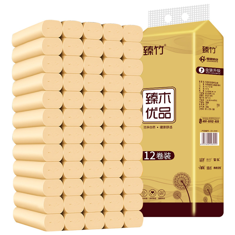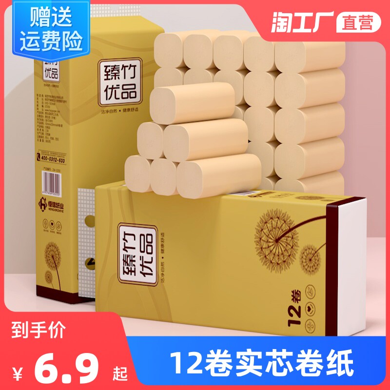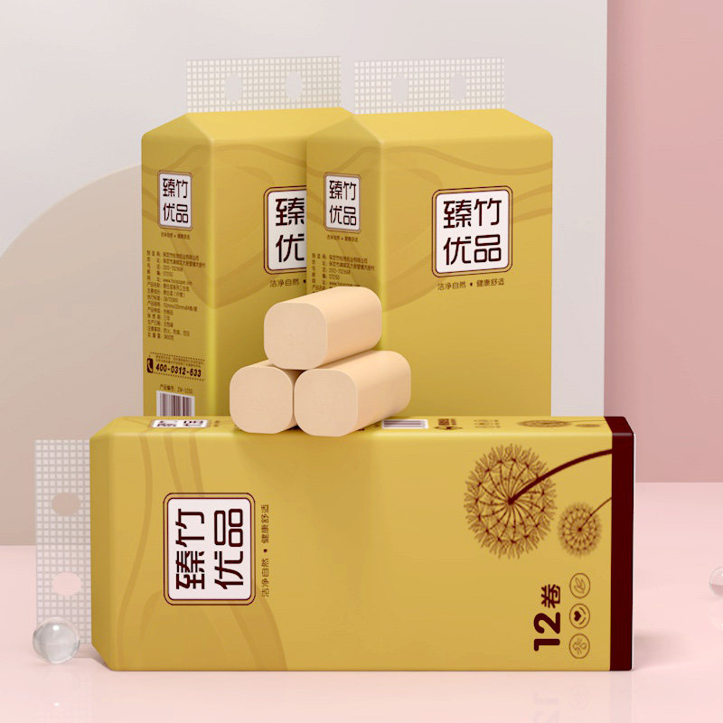 12 рулонов бамбуковой мякоть, оригинальная туалетная бумага Семейная завязка, бумажные полотенца, туалет, туалет, туалетная бумага