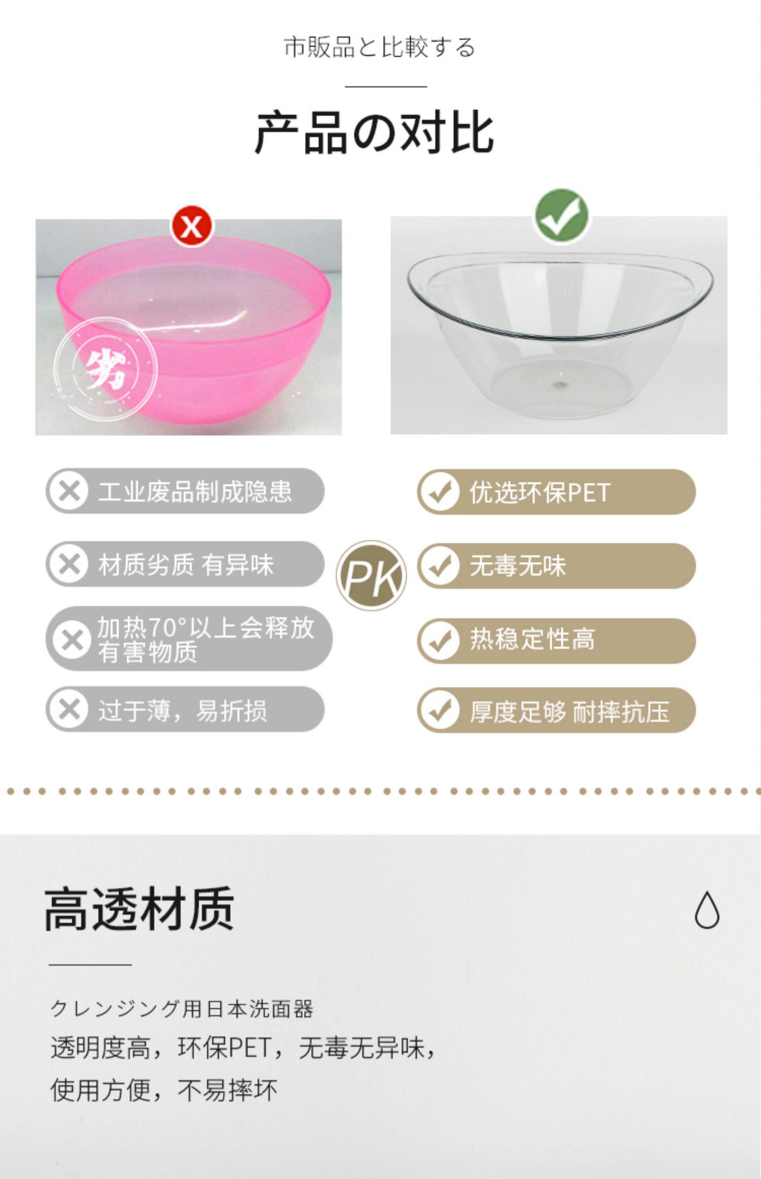Японский таз, прозрачный пластиковый слиток для домашнего использования, для салонов красоты, увеличенная толщина