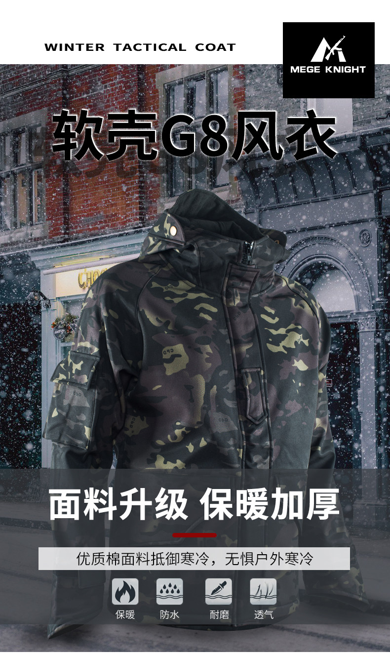 Водонепроницаемый плащ, тактическая демисезонная куртка, зимняя акула, увеличенная толщина