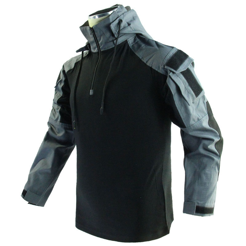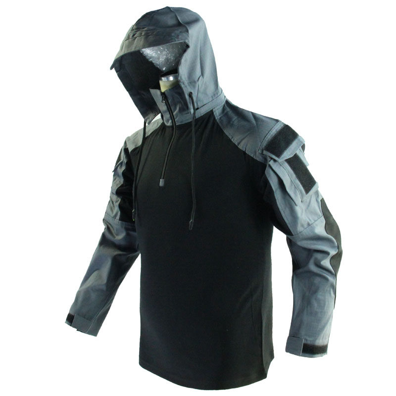 Rhinoceros Эректильная броня Город серо-черный цвет цветовой блокировки с длинными рукавами тактическая футболка Gen3 Facelift Combat Top Top Ykk Hood съемный