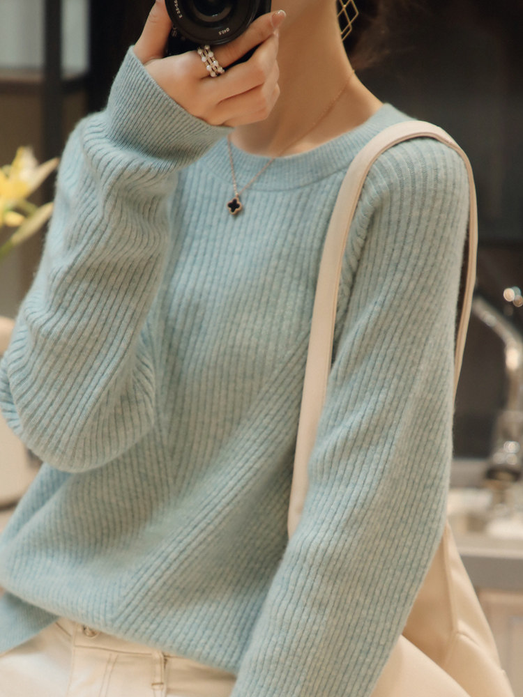 Демисезонный шерстяной трикотажный свитер с круглым воротником, кашемировый базовый приятный телу лонгслив, оверсайз, увеличенная толщина