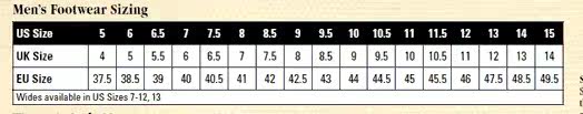 Официальная таблица размеров, код США и европейское преобразование кода, только для справки