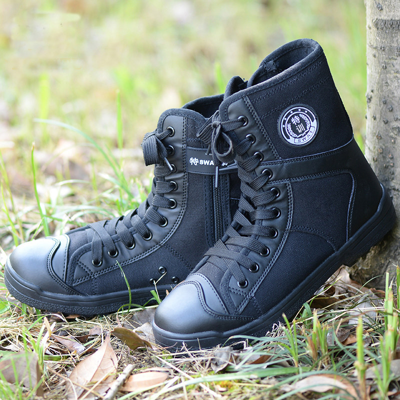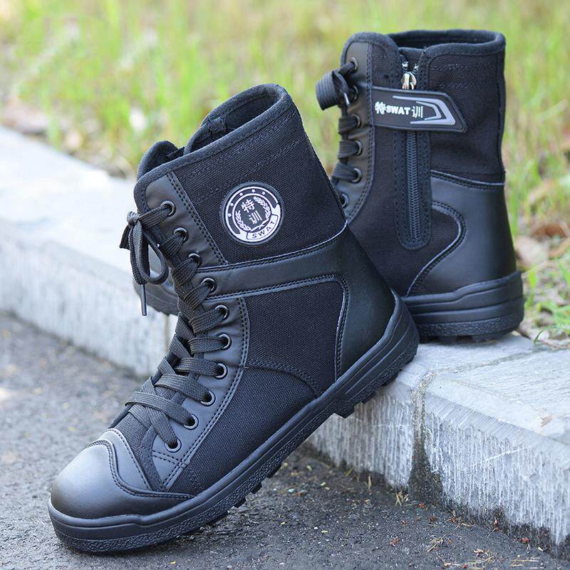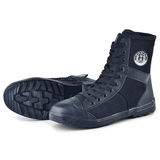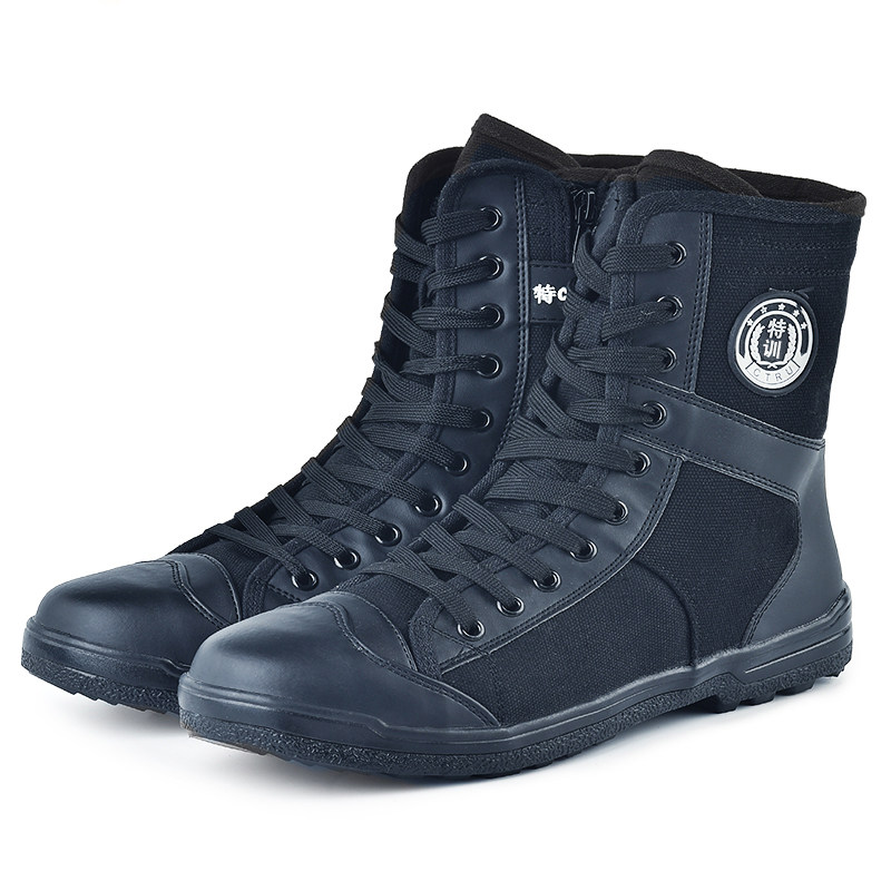 Высокие дышащие тканевые черные сапоги, высокая талия