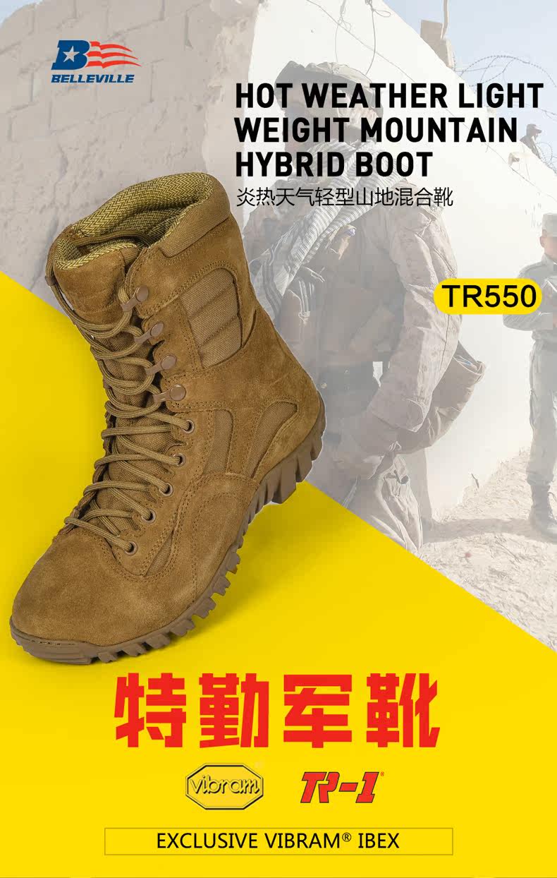 Американская белвилльская земля в боевых сапогах мужская высокая ношение -устойчивый и дышащий TR550
