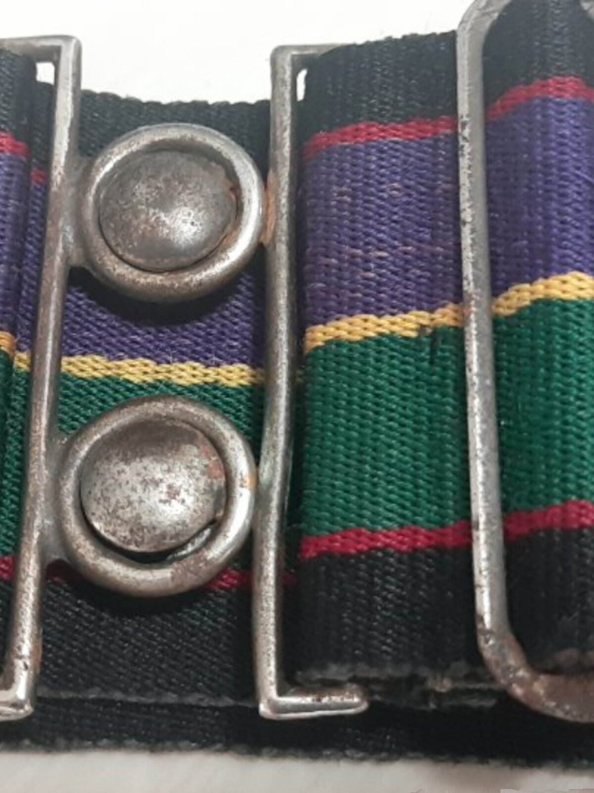 Пряжка ремня имеет следы окисления, а сам ремень имеет явные потертости и пятна.