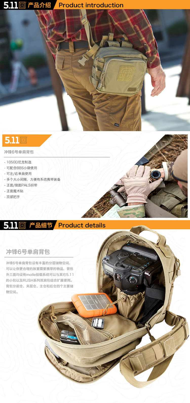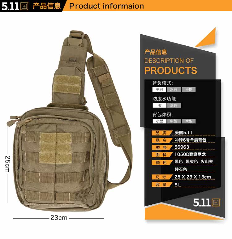 US 511 High -плотность Нейлоновая водонепроницаемая YKK заряд зарядки 6 Мужчины и женщины Универсальный плечевой рюкзак 56963
