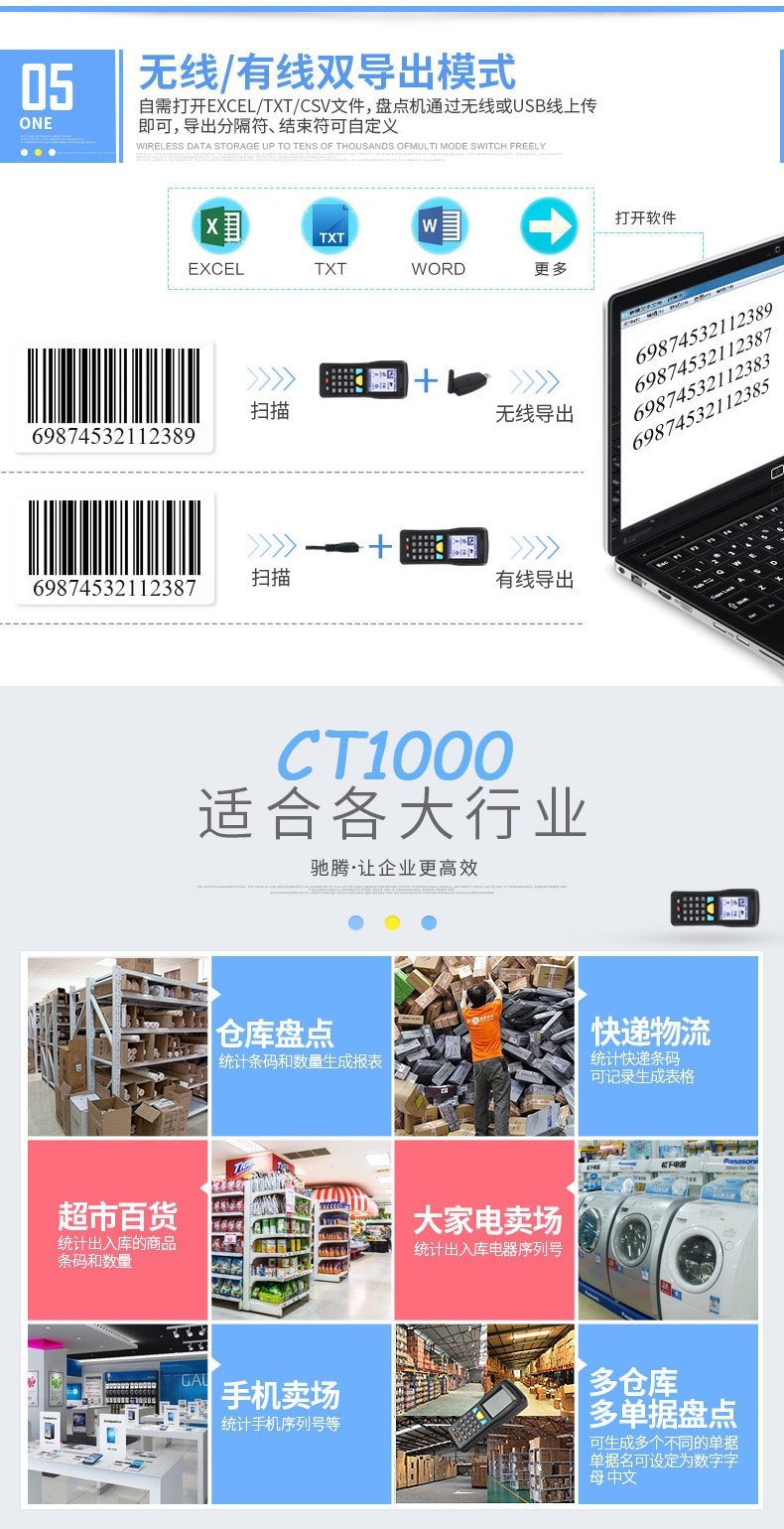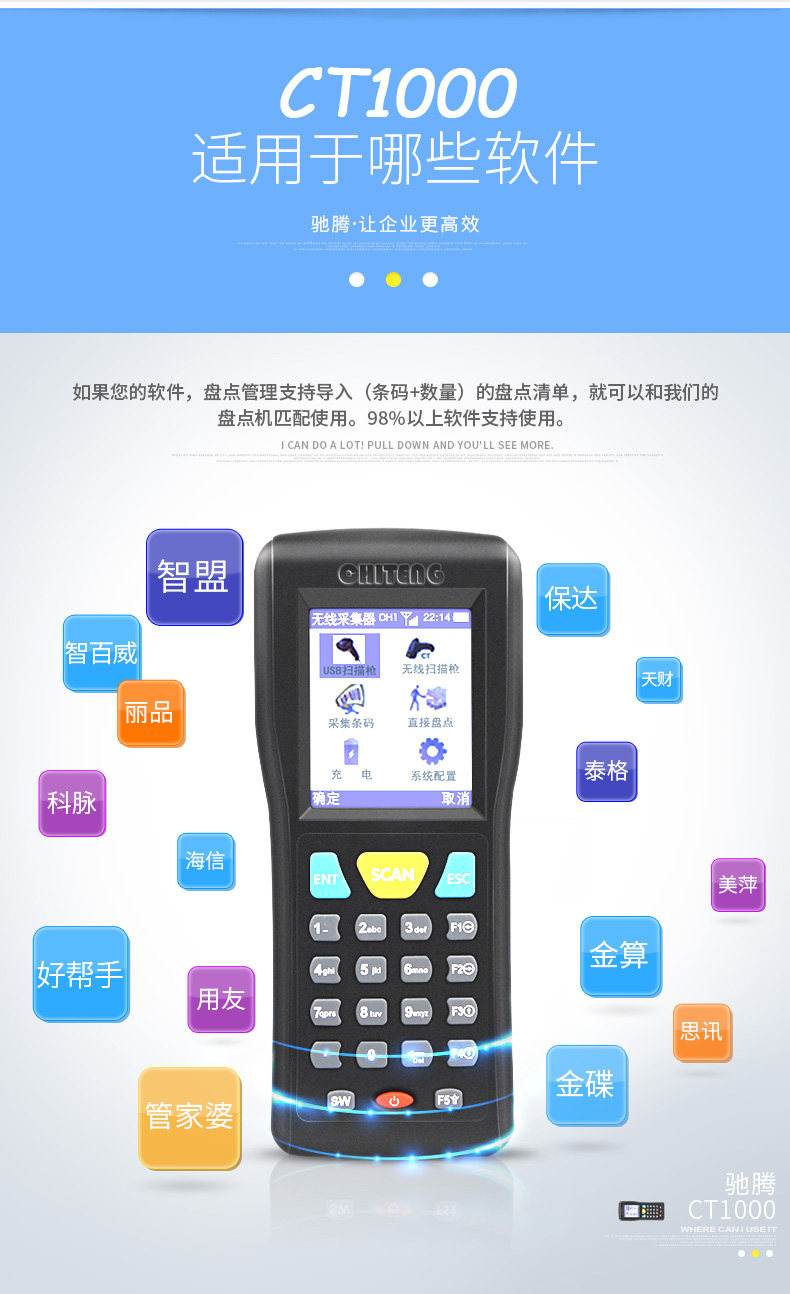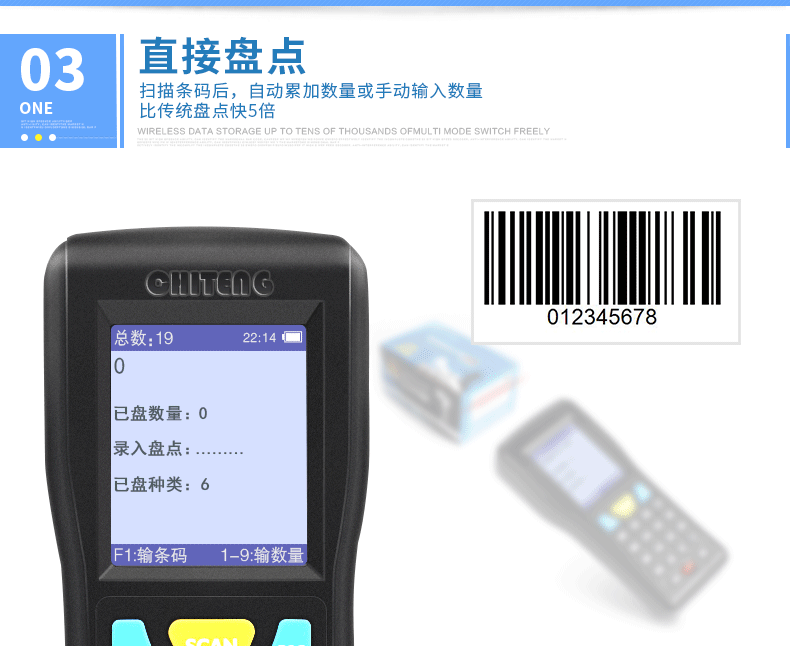 驰腾 CT1000 Инвентаризация машины беспроводной сканирующее пистолет, книга одежды, супермаркет Logistics Express ERP -депозит.
