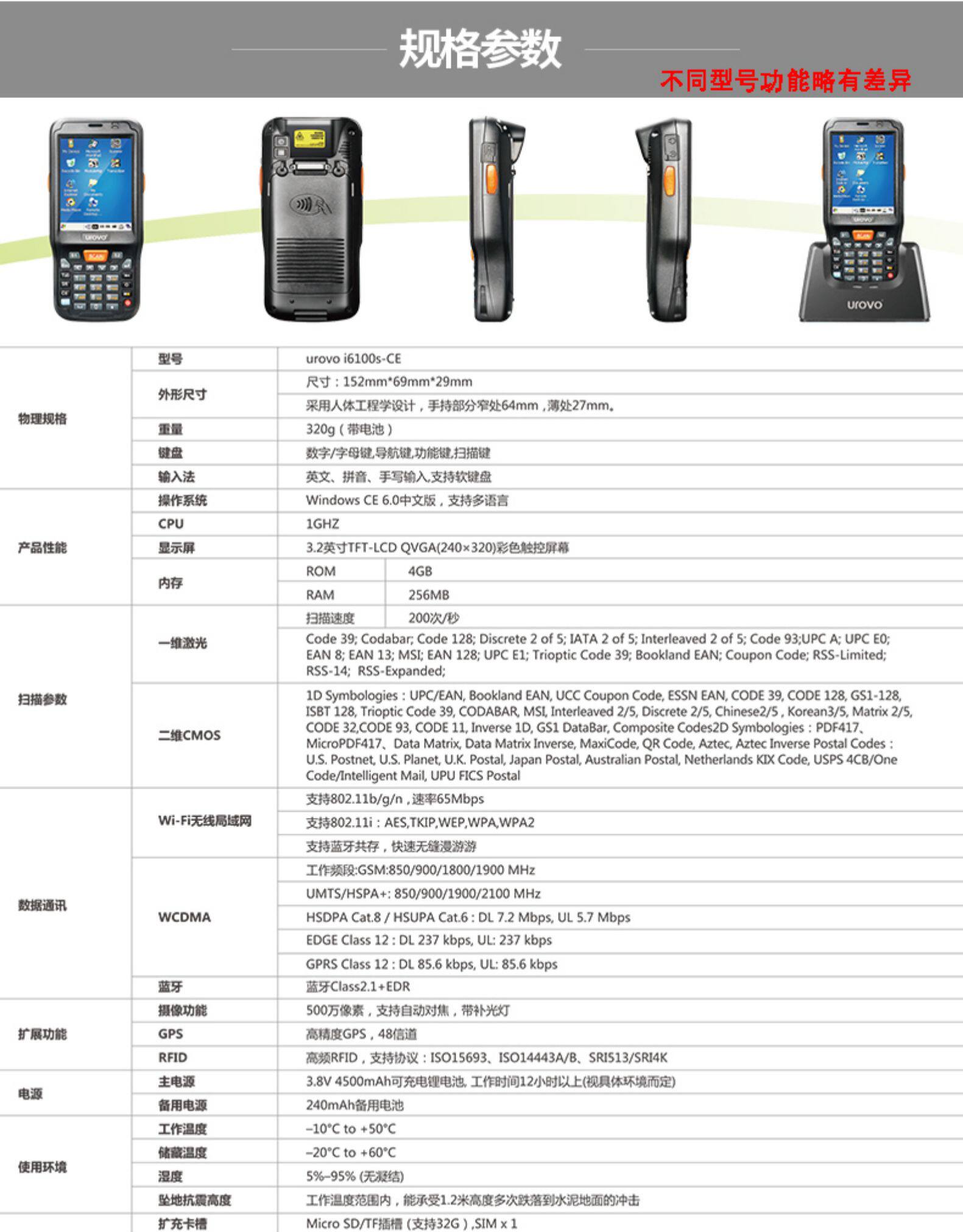 Урово I6100S Collector Data Mobile Handheld Handheld PDA Беспроводной код Сканирующий инвентарь пистолет первого/двухмерного сканера Вторичное развитие Wince6.0